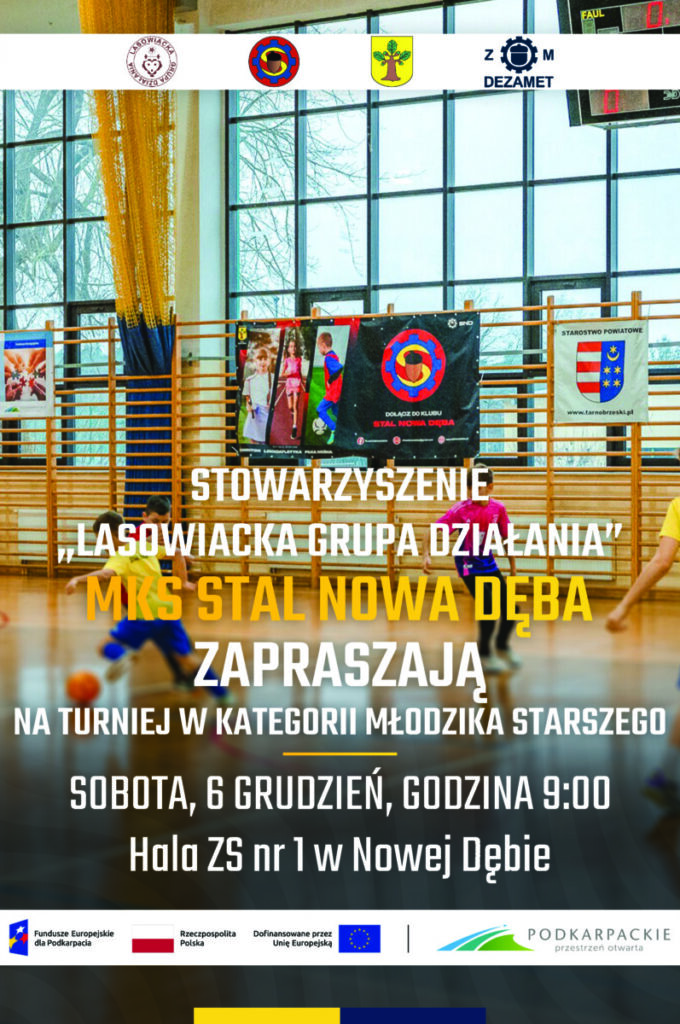 Wydarzenie będzie realizowane poprzez wydarzenia o charakterze sportowym. Turniej Piłki Nożnej odbędzie się dnia 6 grudnia 2025 roku w Zespole Szkół Nr 1 w Nowej Dębie, ul. Mikołaja Reja 7, 39-460 Nowa Dęba w godzinach 9:00-14:00.